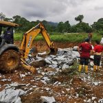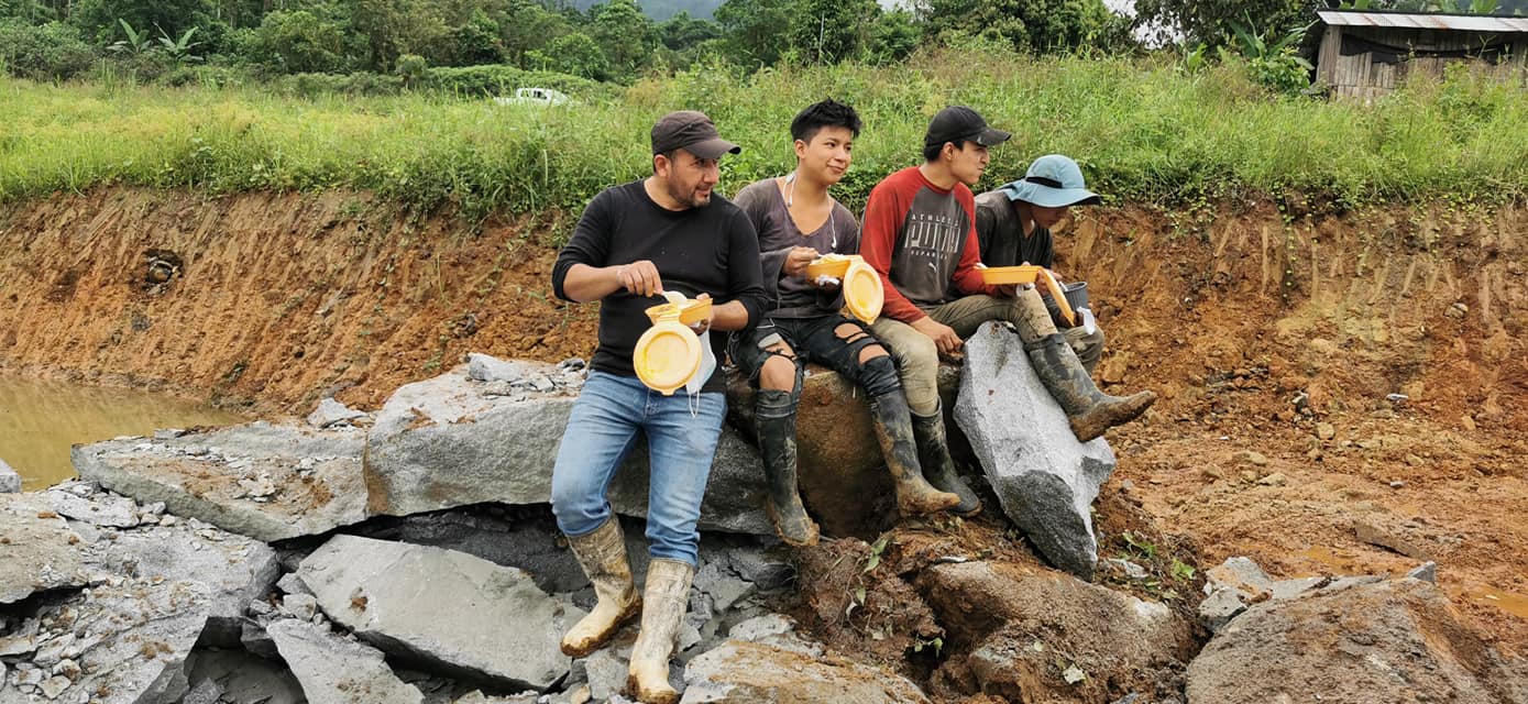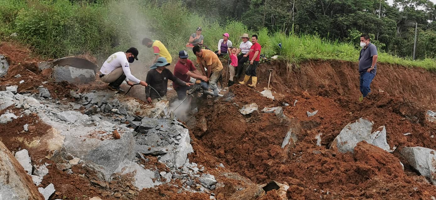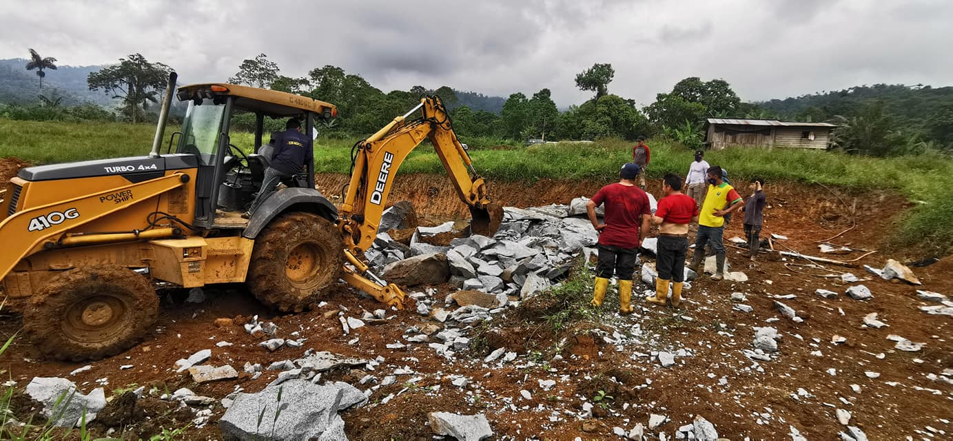 Minga en comunidad Bella Aurora, que contó con la participación del GAD parroquial, el Sr. Alcides Yunga presidente de la comunidad, el Sr. Sirilo Yunga y personal del sector minero que facilitaron la retroexcavadora, el comprensor, también se contó con la participación de personal técnico capacitado que ayudaron con la nivelación de las áreas donde se estará construyendo una cancha de uso múltiple en los próximos días.
